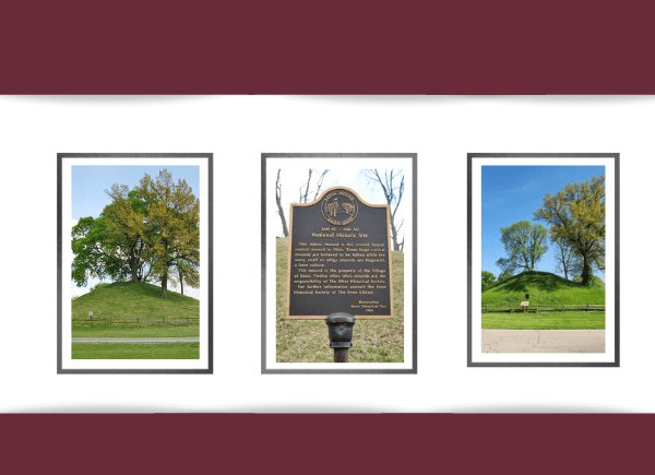 Although no reliable report exists as to any professional exploration of this mound or any Adena artificats or material obtained, there is a brief account of an alleged partial excavation reported in “Beer’s History of Clark County”. Reportedly the mound was opened around 1870-1880 by local young persons. An indentation on the northwest side of the mound and an irregular area where the dirt was thrown is very likely the result of this excavation.